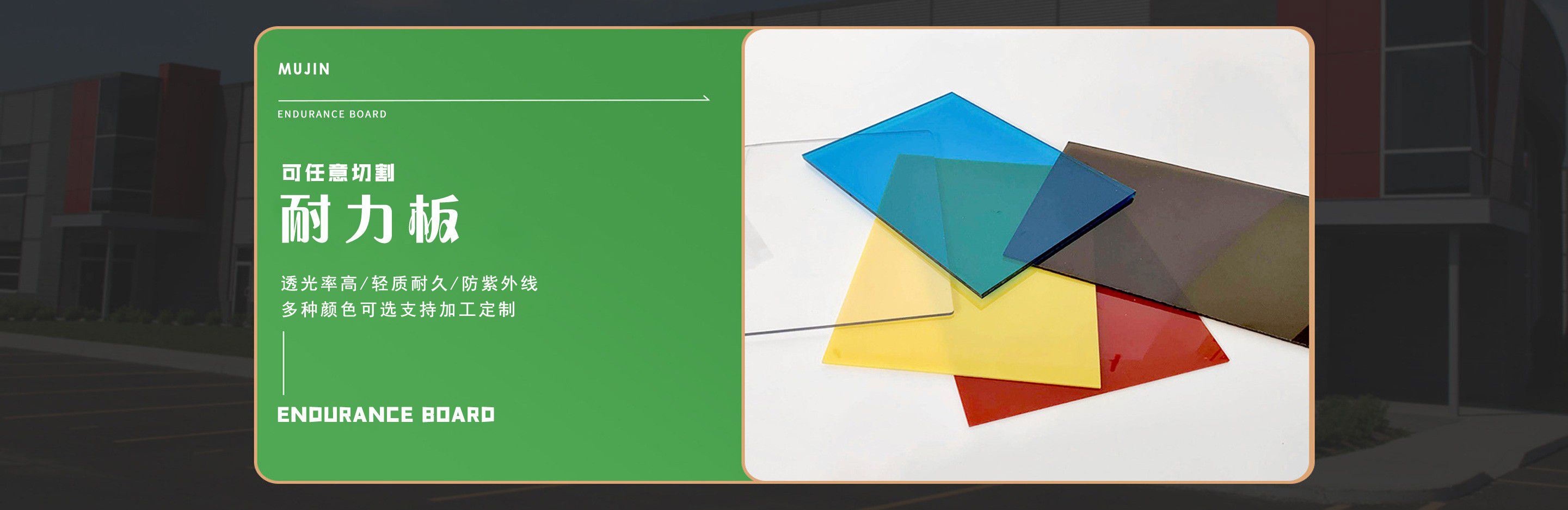 聊城市沐金塑膠有限公司注冊資金2180萬元,占地20000余平方,擁有自建廠房15000平方,員工100余名。10余年來,公司主營耐力板,鎖扣耐力板,耐力板深加工,無動力通風器,組合雨搭,PVC硬脂板,耐力板廠家等板材的發展戰略,逐漸成長為綜合性企業?! 」緭碛卸鄺l板材共擠生產線,采用世界知名品牌進口原材料和先進工藝,依據完善的ISO9001質量管理體系和ISO14001環境管理體系,為產品的卓越品質提供了強有力的保證。憑借過硬的創新能力和堅實的硬件基礎,贏創已成為國內領先的熱塑性板材生產商,產品被廣泛應用于建筑業、農業、工業、廣告業、安防行業及DIY領域?! 」臼冀K致力于通過提供最優的板材應用解決方案,為客戶創造最高的價值;堅守創新、質量、靈活、服務和速度的核心價值觀;堅持“完美的產品需要完美服務的支持”的經營理念,努力實現成為世界領先的板材與解決方案供應商的夢想。 在未來,公司將立足客戶需求,不斷改變和完善現有產品,拓展產品線和充分開發板材的應用領域,為客戶創造全方位的價值。同時更好地實現員工的價值,實現公司團隊的價值。我們將與您一起創贏未來! 企業使命:成為世界領先的板材與解決方案供應商?! 」驹妇埃和ㄟ^提供最優的板材應用解決方案,為客戶創造最高的價值。 核心價值觀:質量...